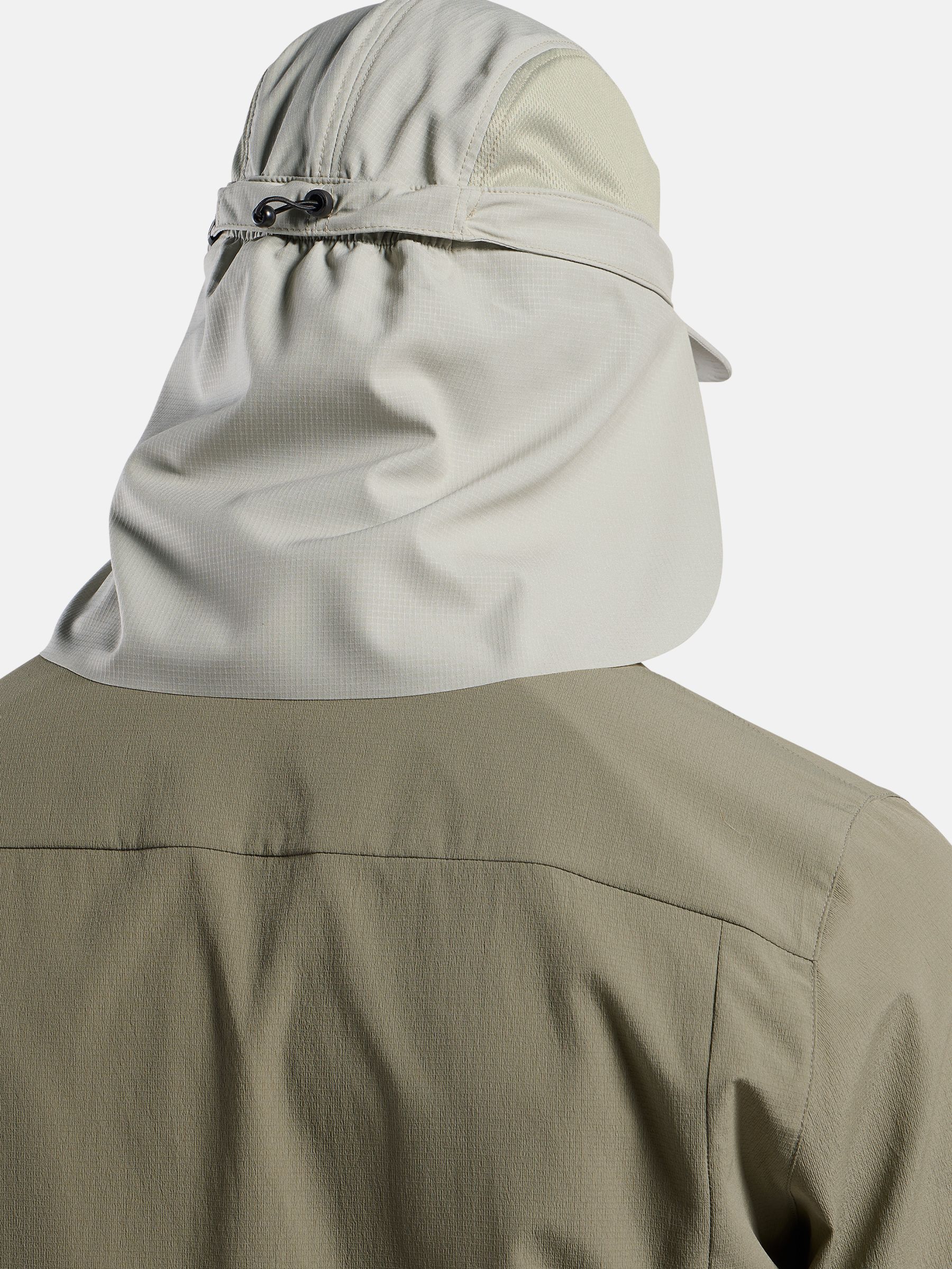 부분적으로 리사이클된 폴리와 엘라스테인 블렌드 원단을 사용해 자외선과 땀으로부터 얼굴과 목을 보호합니다.
