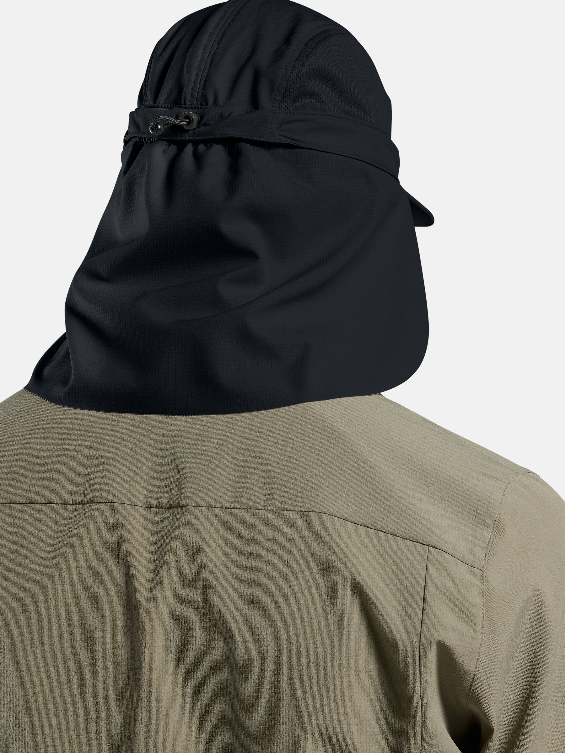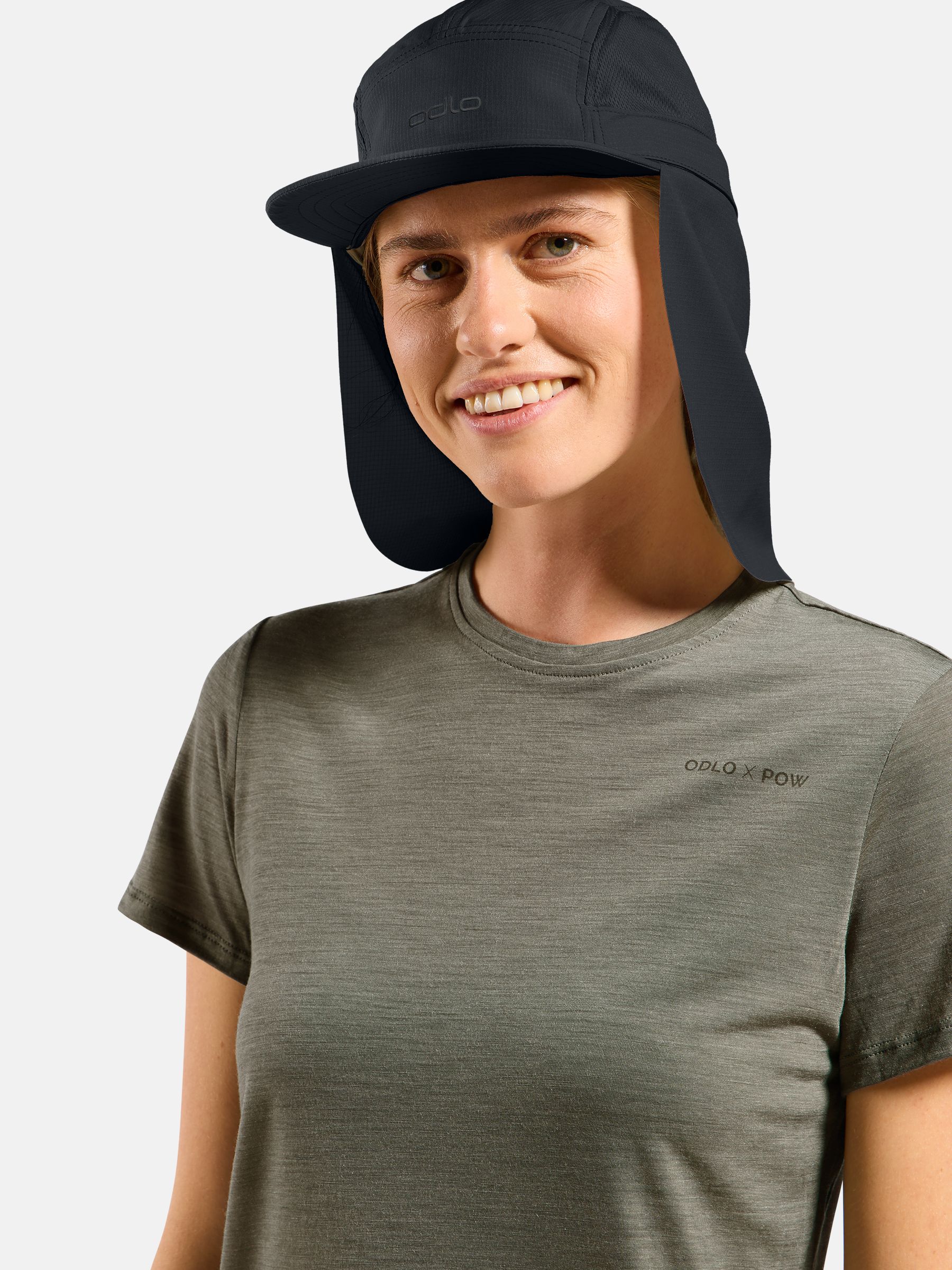 부분적으로 리사이클된 폴리와 엘라스테인 블렌드 원단을 사용해 자외선과 땀으로부터 얼굴과 목을 보호합니다.