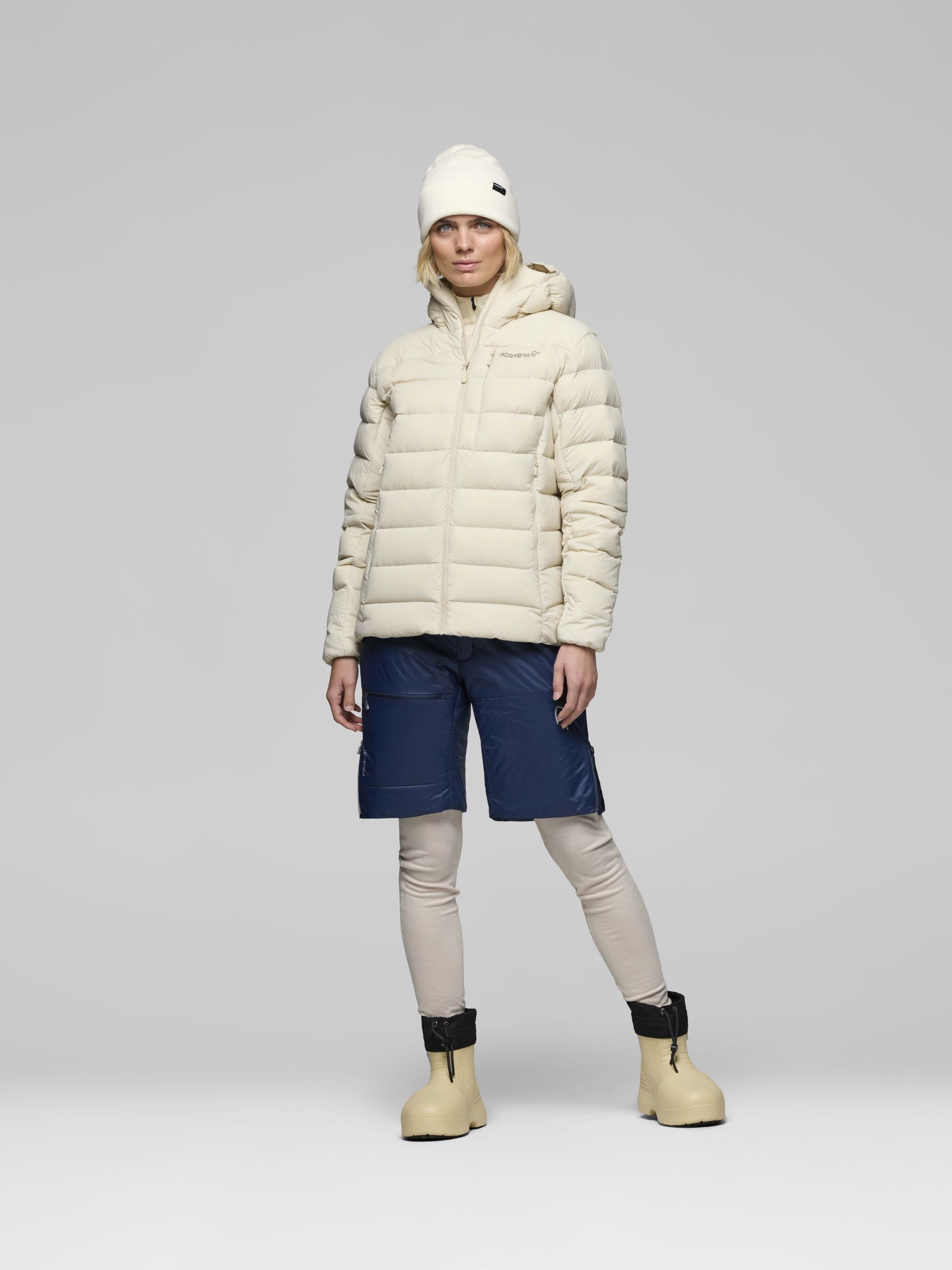 이 재킷에는 **재활용 다운(필파워 700)**이 사용되었으며, 겉감은 **100% 재활용 나일론(22데니어)**으로 제작되어