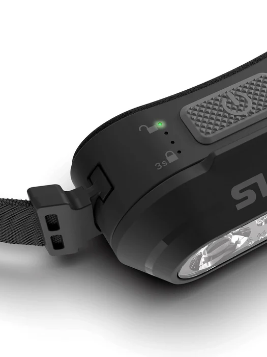 Smini에는 슬림하고 편안한 15mm 헤드밴드가 함께 제공되지만, 헤드램프는 별도로 판매되는 3mm 헤드밴드와 함께 사용할 수도 있습니다. 충전식 배터리는 램프 뒤에 위치하여 이마에 단단히 고정되고 최적의 무게 균형을 유지합니다. 램프는 90도 기울어질 수 있어 달리는 동안 만나는 사람들의 눈부심을 피할 수 있습니다.