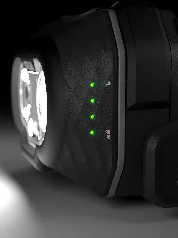 Discover는 더 작은 그림자를 위한 COB-LED와 가까운 거리를 위한 더 넓은 조명을 갖춘 500루멘의 밝기를 제공합니다. 또한 야간 시력을 유지하는 빨간색 표시등 모드와 지도를 더 잘 읽을 수 있는 주황색 표시등이 있습니다. 램프에는 잠금 기능이 있으며 15루멘의 초저 모드에서 사용 가능하며 연소 시간은 25시간으로 배터리를 절약할 수 있습니다.
