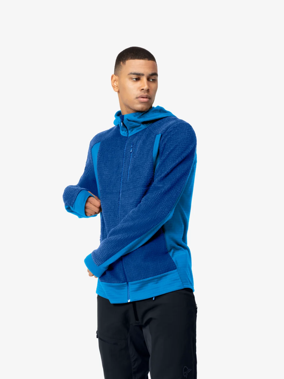 최적의 움직임 범위를 보장하고 전략적인 부분의 원단 질량을 줄이기 위해 겨드랑이, 옆면, 후드 부분에 신축성이 더 좋은 Polartec® Power Grid 139g/m2(폴리에스터 97%, 엘라스테인 3%) 원단을 추가했습니다.