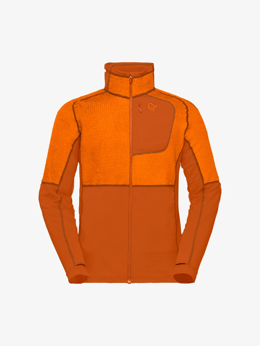 가벼운 warm1 원단은 103g/m2(재활용 폴리에스터 94%, 엘라스테인 6%)의 고급 피부 바로 옆 습기 관리 원단으로, 최대 효율성을 위해 이중 구성 요소 니트 구조를 사용합니다. 이 원단은 몸통 아랫부분과 겨드랑이 아래에 배치됩니다. 함께 매우 개방적이고 습기 효율적인 구조를 만들어 내며, 재킷은 베이스레이어로 완벽하게 작동합니다.
