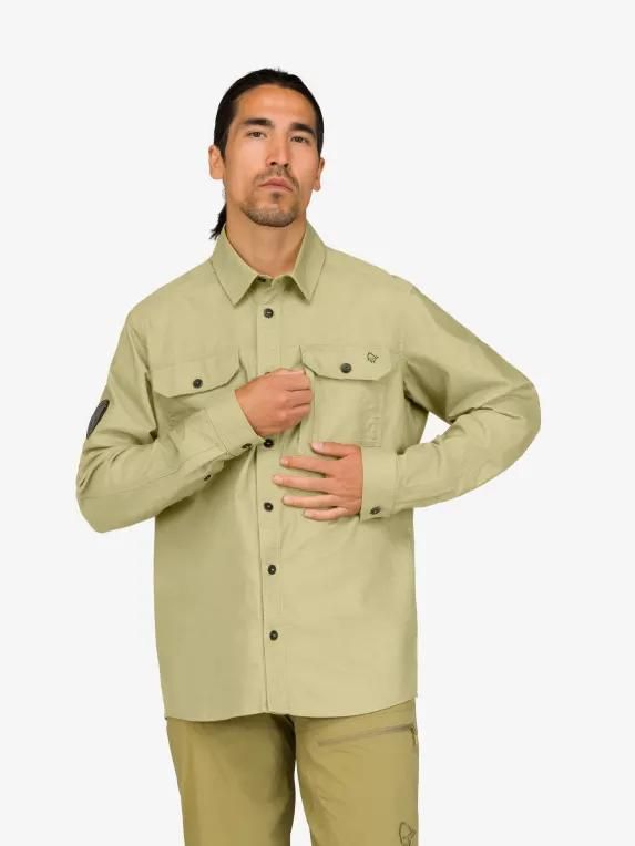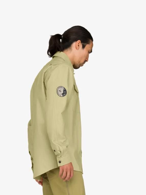 주요 특징 3개의 포켓 - 2개는 단추가 달려 있습니다. 왼쪽에는 세로 지퍼 포켓이 있습니다. 팔은 미리 구부러져 있어 움직임이 편합니다. 셔츠의 노출된 부분에는 내구성이 뛰어난 작업복에 일반적으로 사용되는 세 바늘 솔기가 있습니다. 팔 아래에 두 개의 작은 구멍이 있어 통기성을 높였습니다. 2007년 울베타나 등반 원정의 스토리텔링이 담긴 패치가 부착되어 있습니다.
