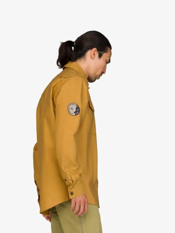 주요 특징 3개의 포켓 - 2개는 단추가 달려 있습니다. 왼쪽에는 세로 지퍼 포켓이 있습니다. 팔은 미리 구부러져 있어 움직임이 편합니다. 셔츠의 노출된 부분에는 내구성이 뛰어난 작업복에 일반적으로 사용되는 세 바늘 솔기가 있습니다. 팔 아래에 두 개의 작은 구멍이 있어 통기성을 높였습니다. 2007년 울베타나 등반 원정의 스토리텔링이 담긴 패치가 부착되어 있습니다.