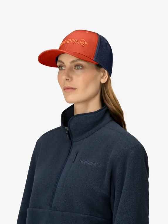 이 캡의 주요 원단은 100% 오가닉 코튼입니다. 캡의 뒷면은 폴리에스테르/엘라스테인 메시 구조로 제작되었습니다.