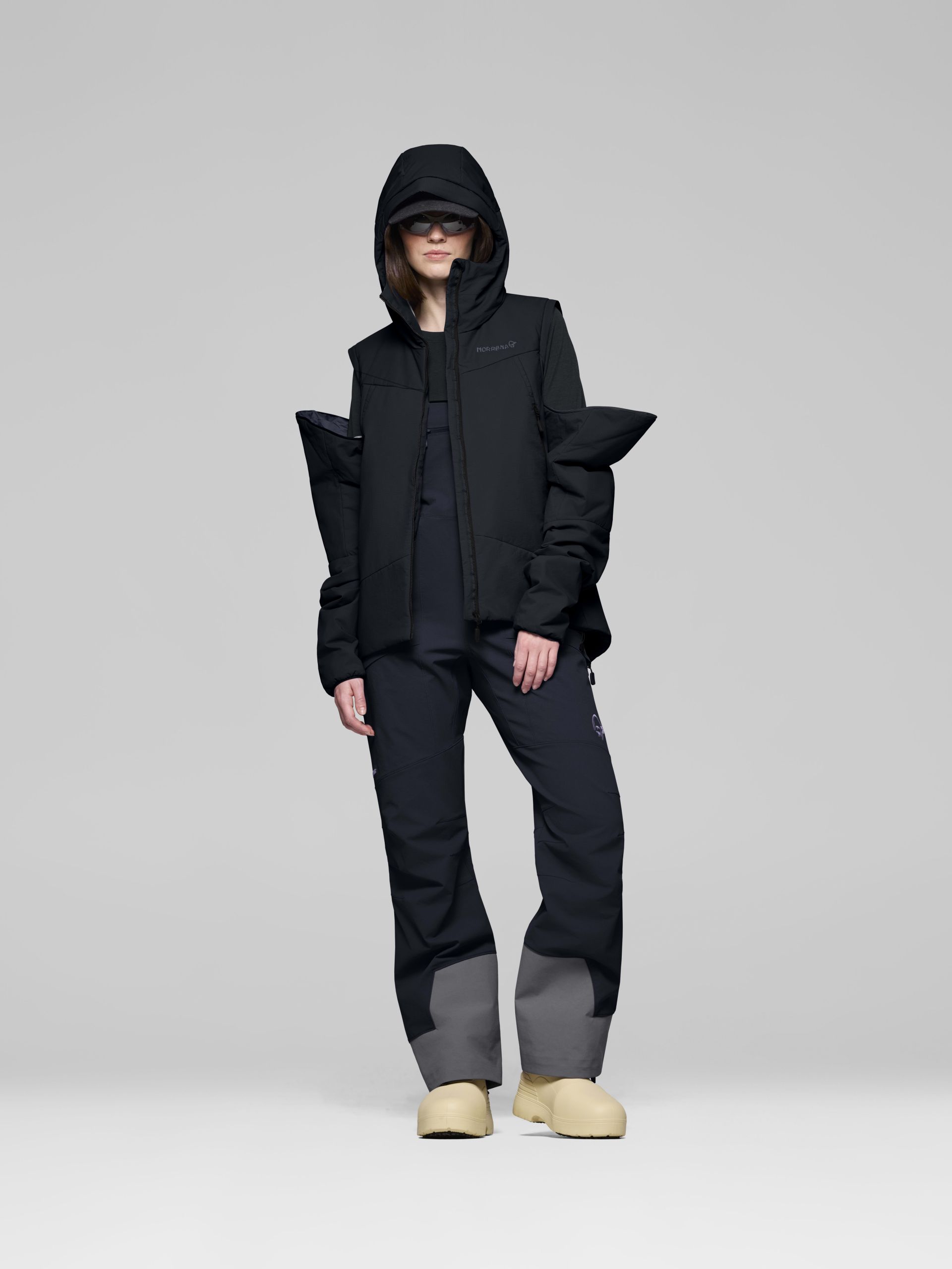 주요 기능으로는 헬멧 호환 후드, 탈부착 가능한 소매(재킷을 베스트로 전환 가능),