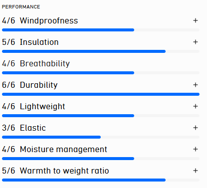 고어텍스 아우터 레이어와 함께 사용할 경우, 활동 시 쾌적 온도는 섭씨 -5도에서 -15도 사이이며,