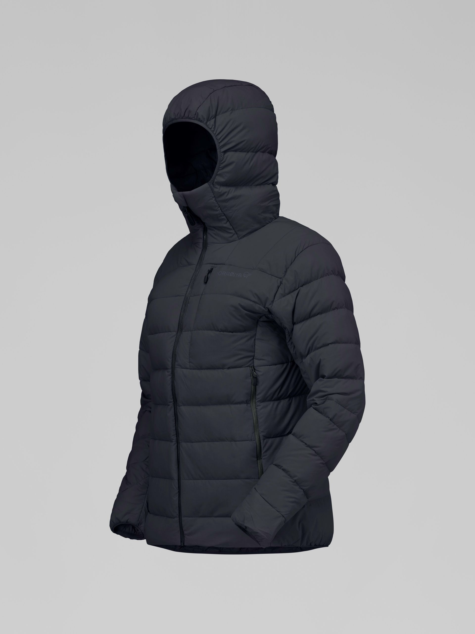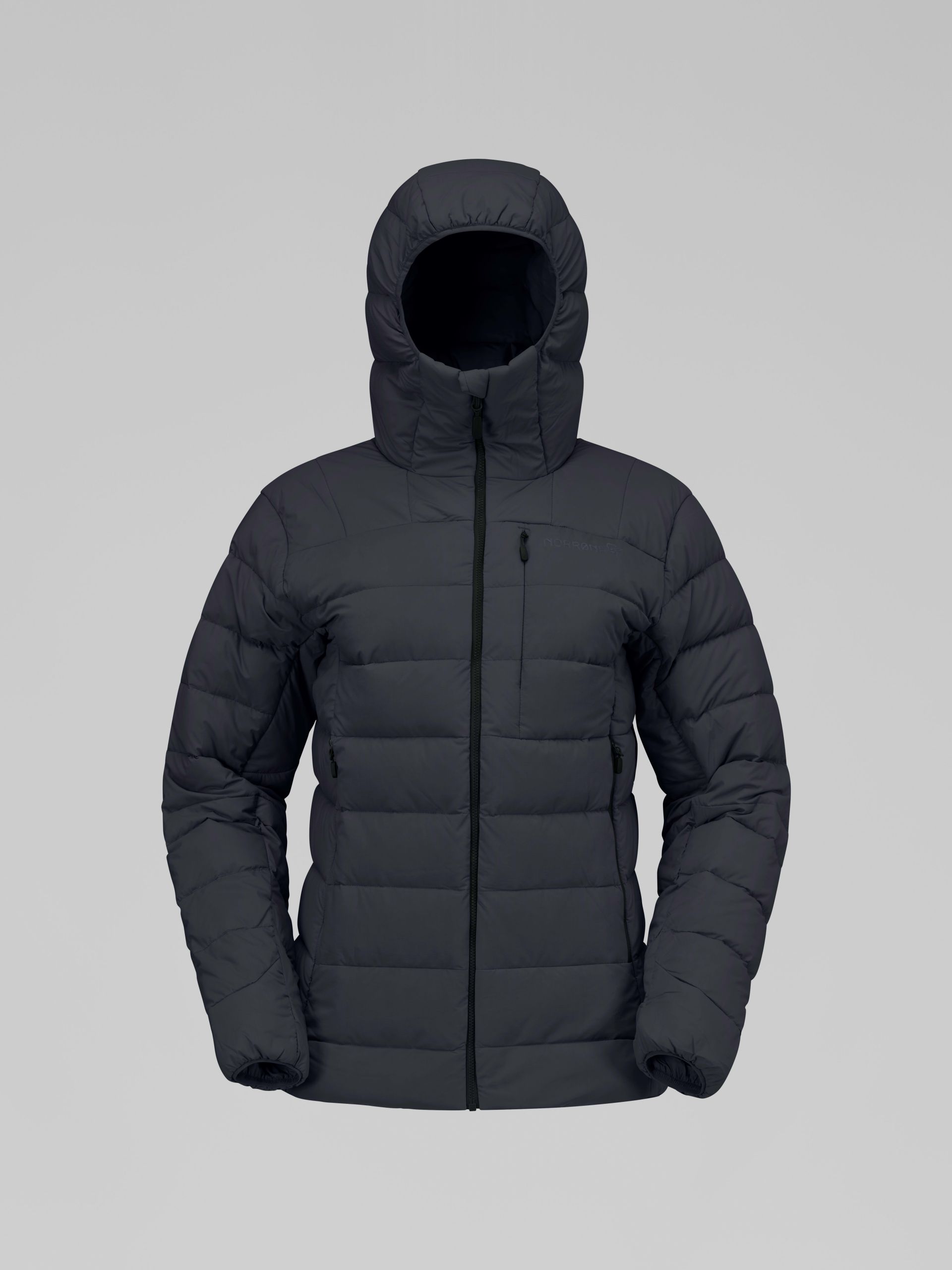 퀼팅 처리된 경량 구조의 중간 무게 다운 재킷으로, 다운의 품질을 타협하지 않으면서도