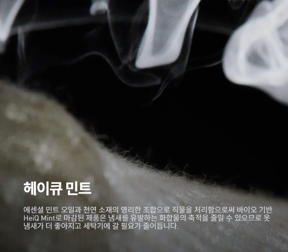 바이오 기반 항균 처리 기술인 ZeroScent로 마감되어 냄새를 최소화하며,