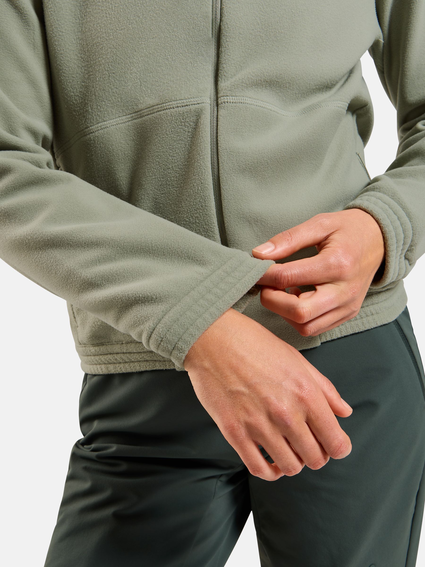 이 풀집 미드 레이어는 초부드러운 재활용 마이크로 플리스로 제작되어 건조 시간이 짧고 신축성이 뛰어납니다.