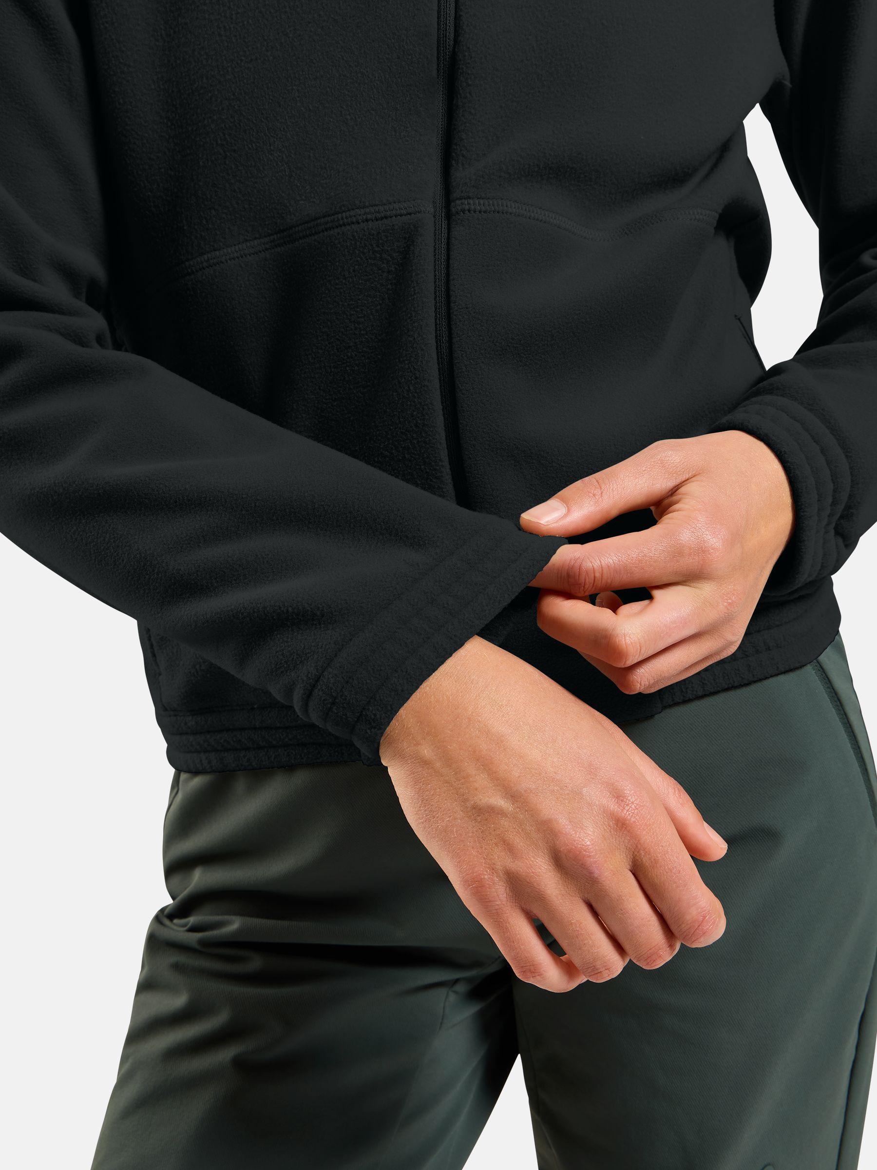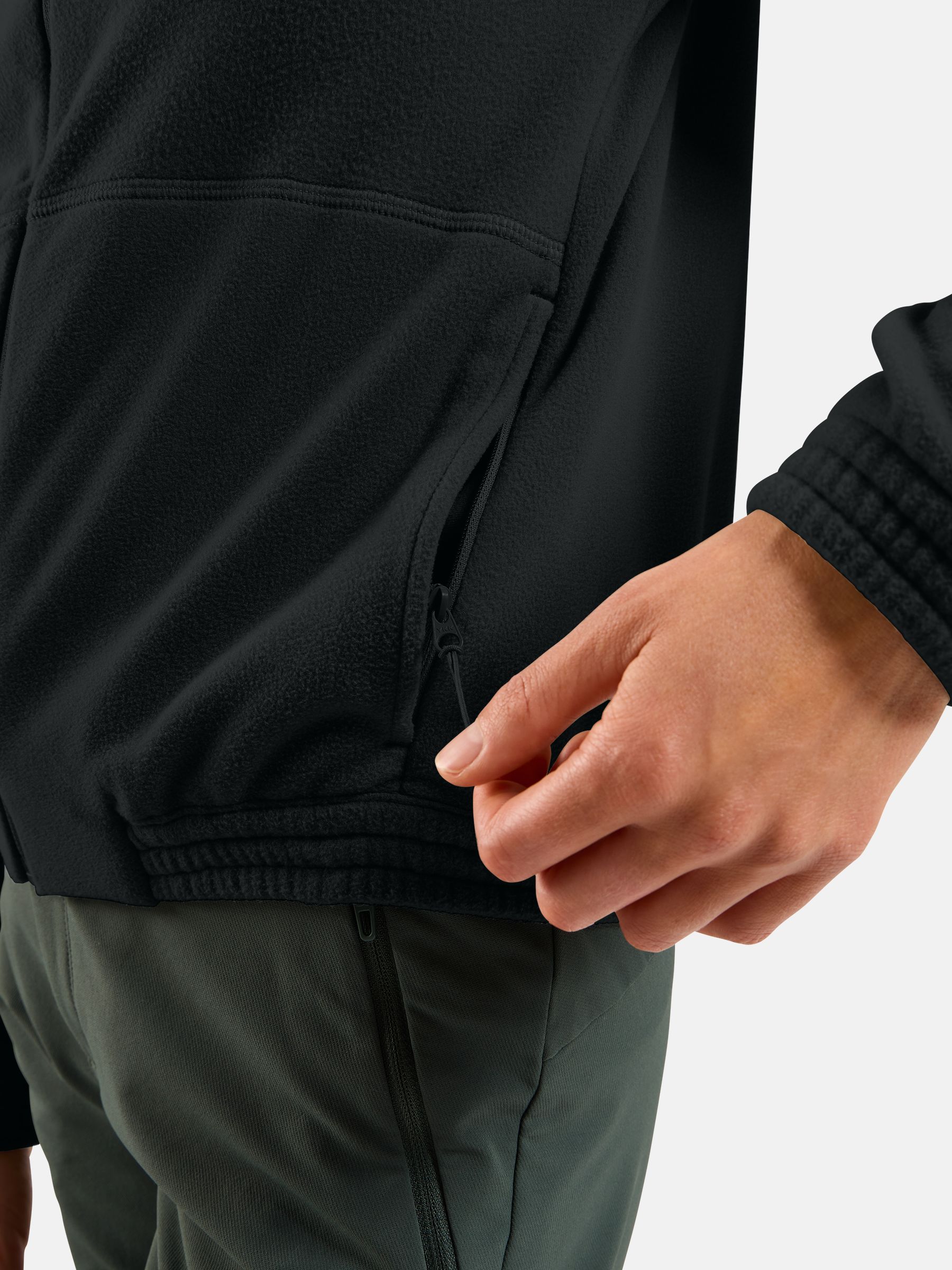 이 풀집 미드 레이어는 초부드러운 재활용 마이크로 플리스로 제작되어 건조 시간이 짧고 신축성이 뛰어납니다.
