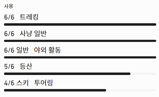 100% 방풍 제품이지만, 6등급 제품보다 약간 가볍고 내구성이 떨어집니다. 극한의 강풍과 저온과 같은 매우 열악한 환경을 제외하고는 바람으로부터 보호해 줍니다. 가벼운 소재로 제작되어 몸에 더 밀착되므로 6등급 제품만큼의 방풍 성능을 제공하지 못할 수 있습니다.