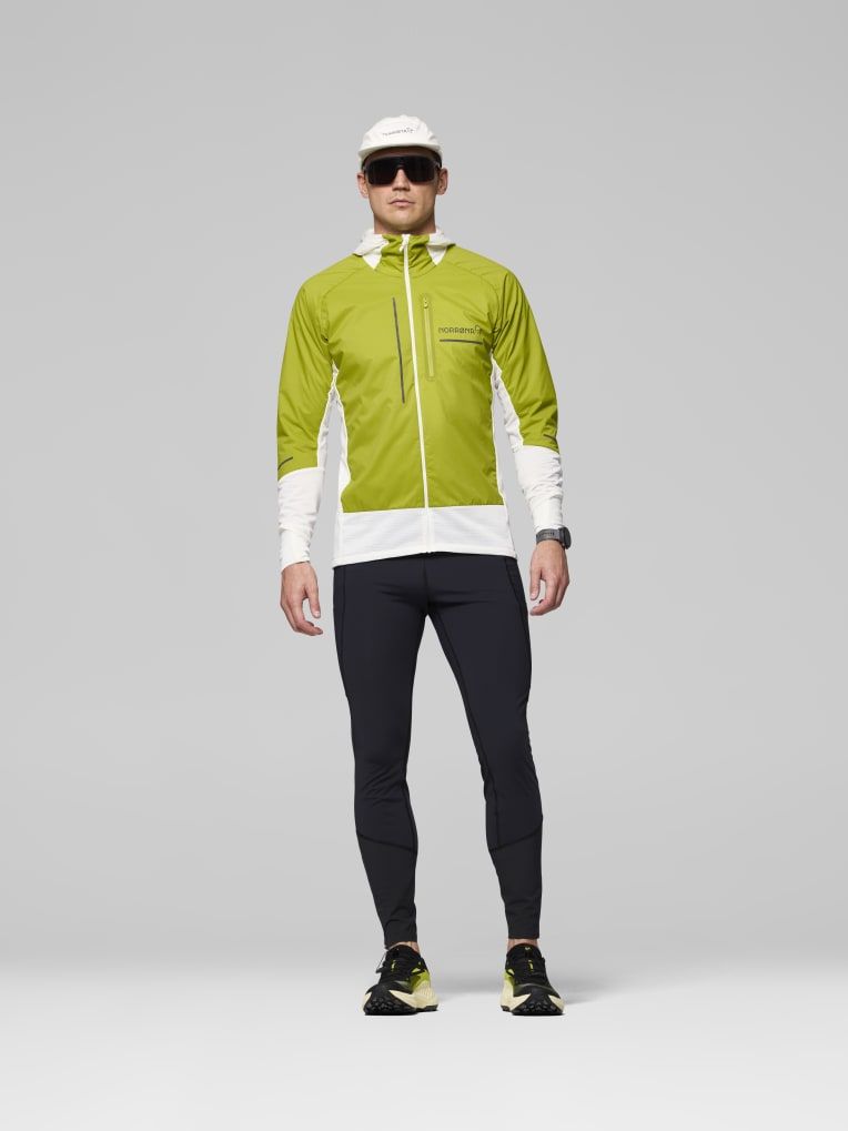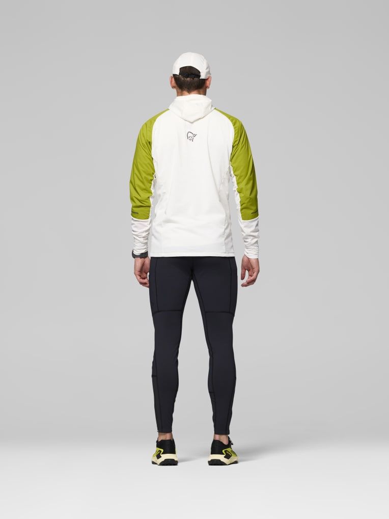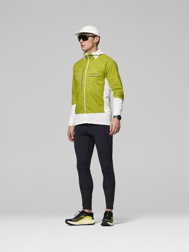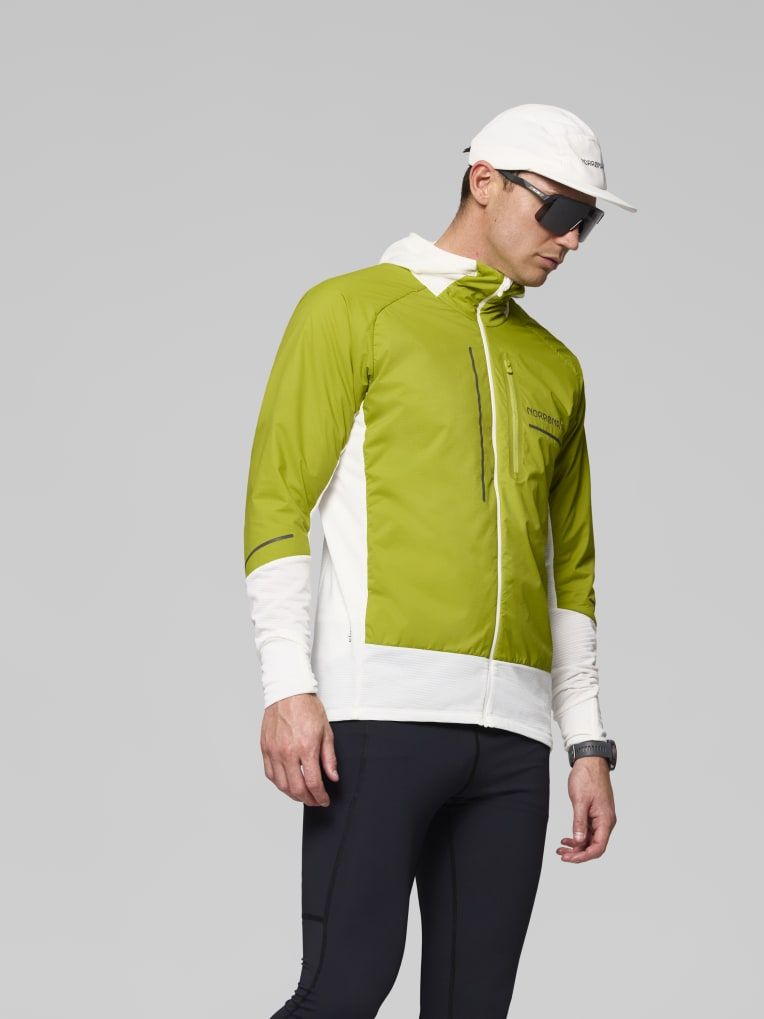 트레일 러닝에 적합한 통기성이 뛰어나고 방풍 기능도 일부 갖춘 하이브리드 플리스 소재입니다.