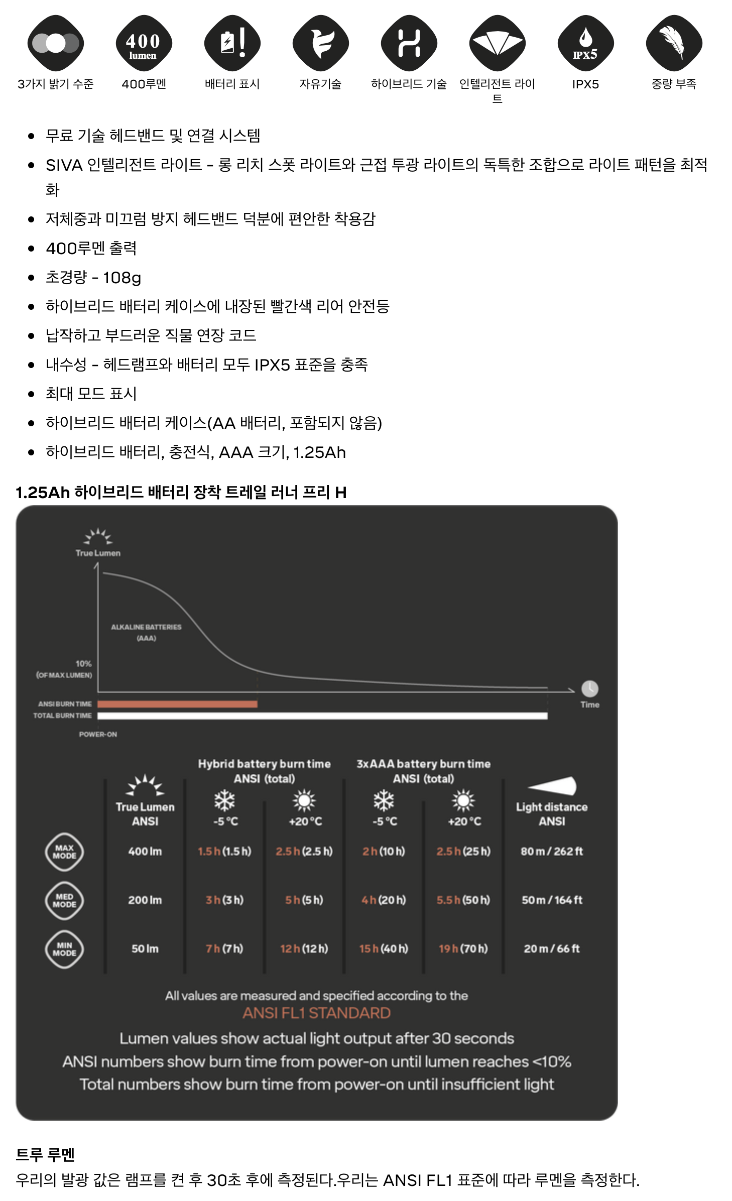 트레일 러너 프리 H는 달리기를 좋아하는 모든 사람들을 위한 편안하고 가벼운 전조등이다.특징과 라이트 빔은 주자의 필요에 최적화돼 있다.프리 H에는 충전식 하이브리드 배터리(1.25Ah)와 하이브리드 배터리 케이스가 함께 제공되며,